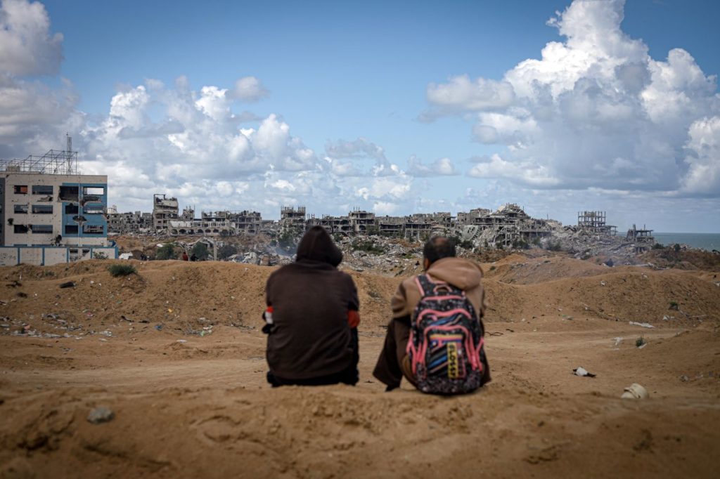 “This photo is from the Al-Sudaniya beach area, it’s a spot where planes used to come to drop aid supplies. These two men were sitting on a large sand dune, waiting for a plane to come. They waited for a long time, from six in the morning, along with many others who were also waiting.